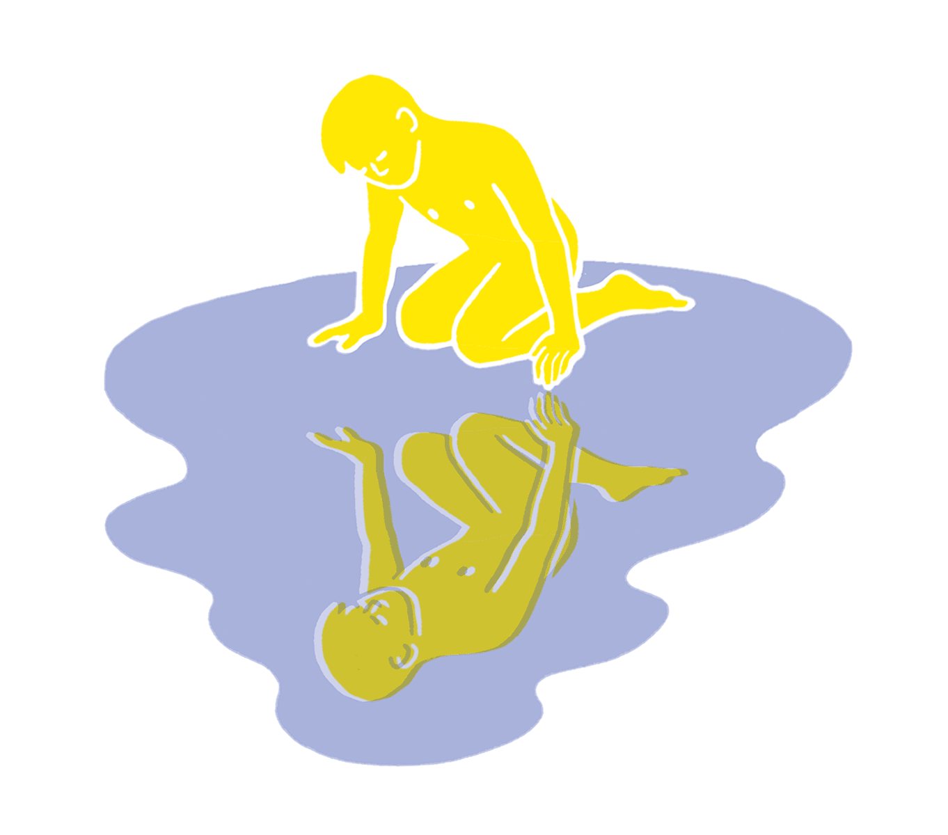 This is a double sidded flip book about the story of Narcissus and Echo. 24 pages, 2 color risograph.